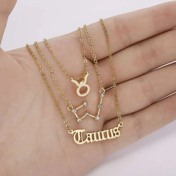 Product description: Astrea is a set of three stylish and adjustable necklaces, designed to adorn the neck. The necklaces are designed with elegance in mind and can be paired with different clothing. They have different pendants: one with the name of the Zodiac sign, one with star constellation and one with the Zodiac sign. The set is available in golden colour.