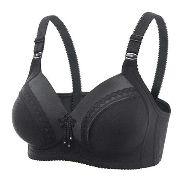 Product description: Brawly is an attractive bra ideal for larger breasts. It has adjustable straps as well as 4 rows of hooks for extra comfort. Instead of wire, it has a non-slip elastic band. The bra has a decoration on the front and an interesting pattern for a more sophisticated look and feel.